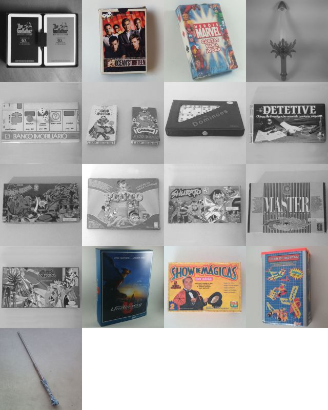 Jogos de tabuleiro antigos, cartas e itens de cultura pop.
